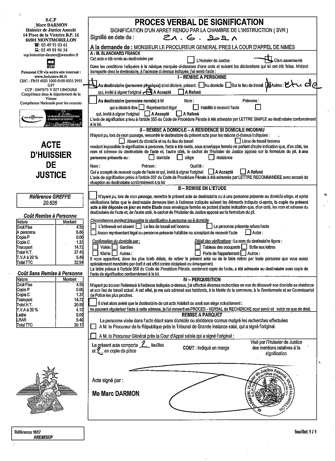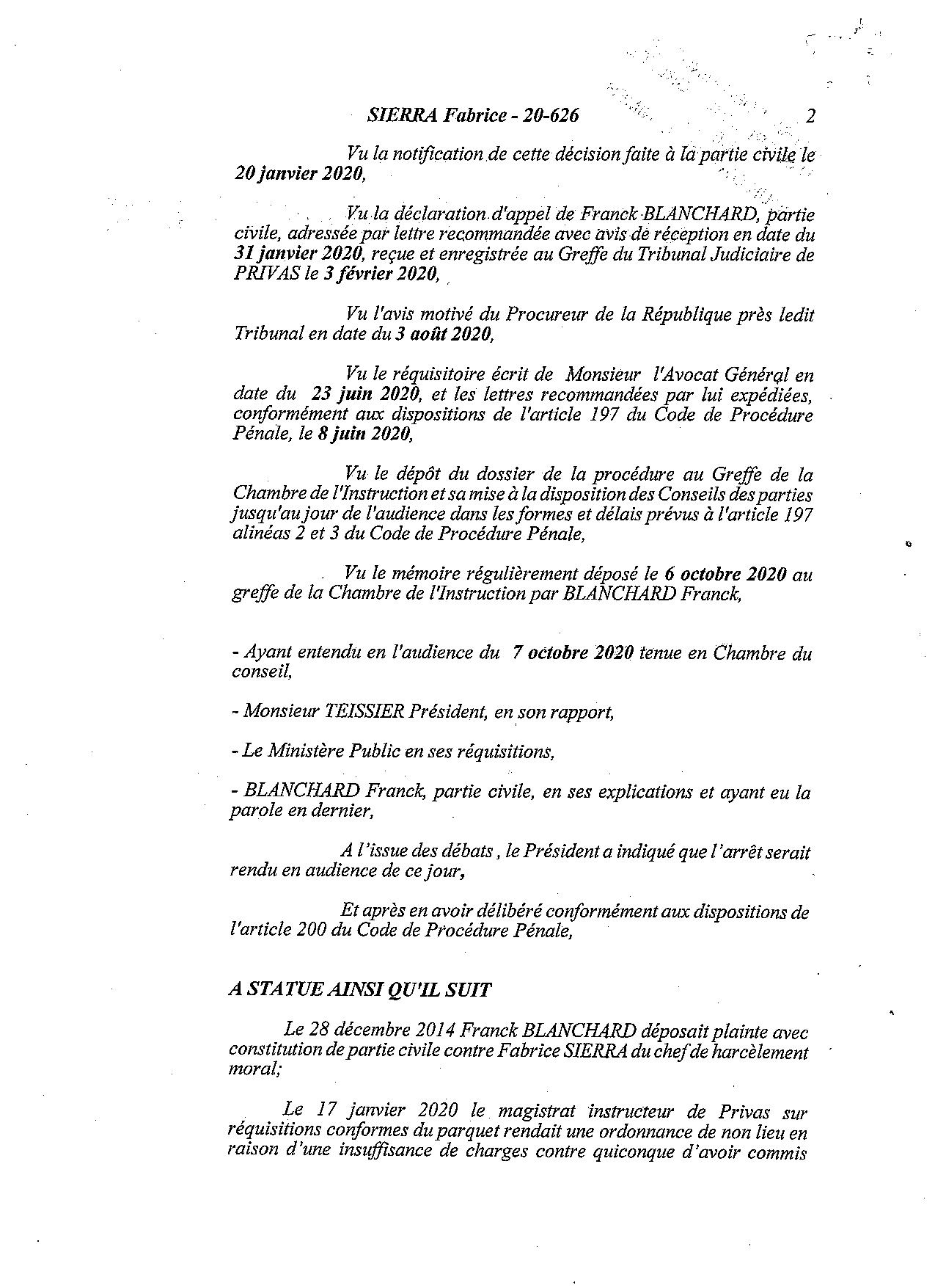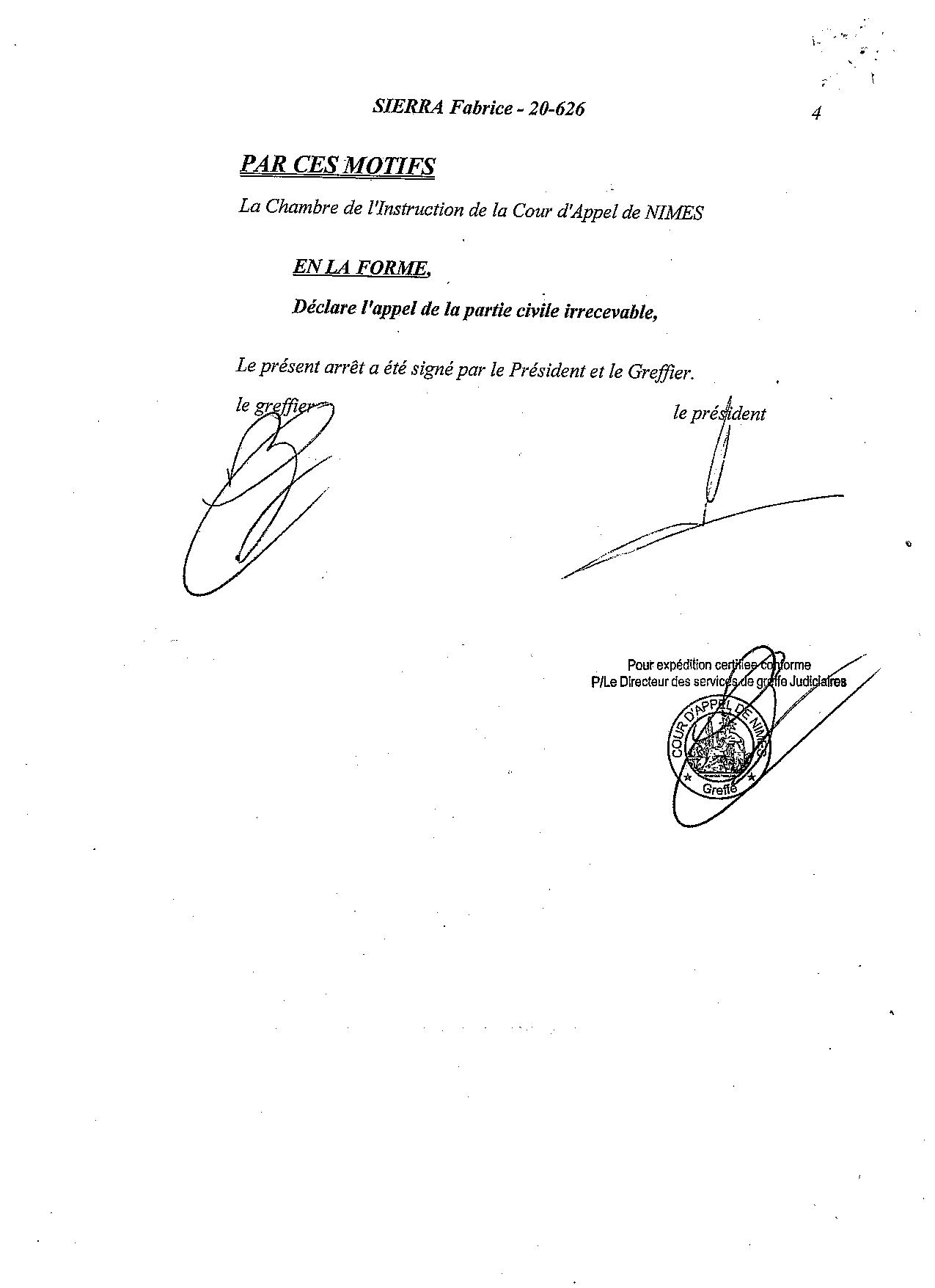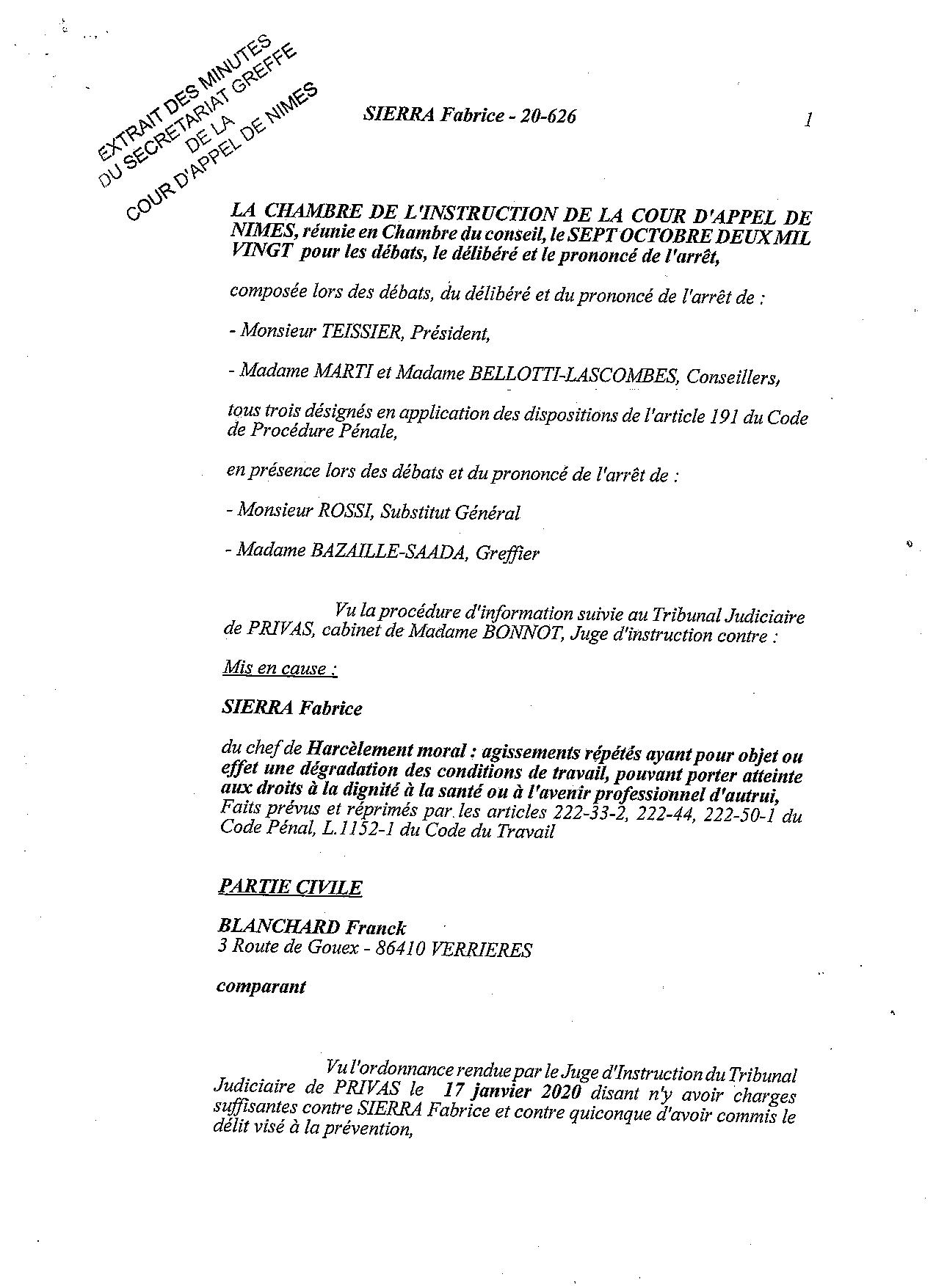ARRET DE LA CHAMBRE DE L'INSTRUCTION CA DE NIMES 07 octobre 2020