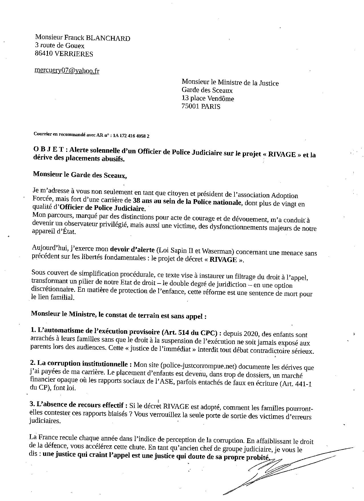Alerte solennelle d'un Officier de Police Judiciaire sur le projet "RIVAGE" et la dérive des placements abusifs. |