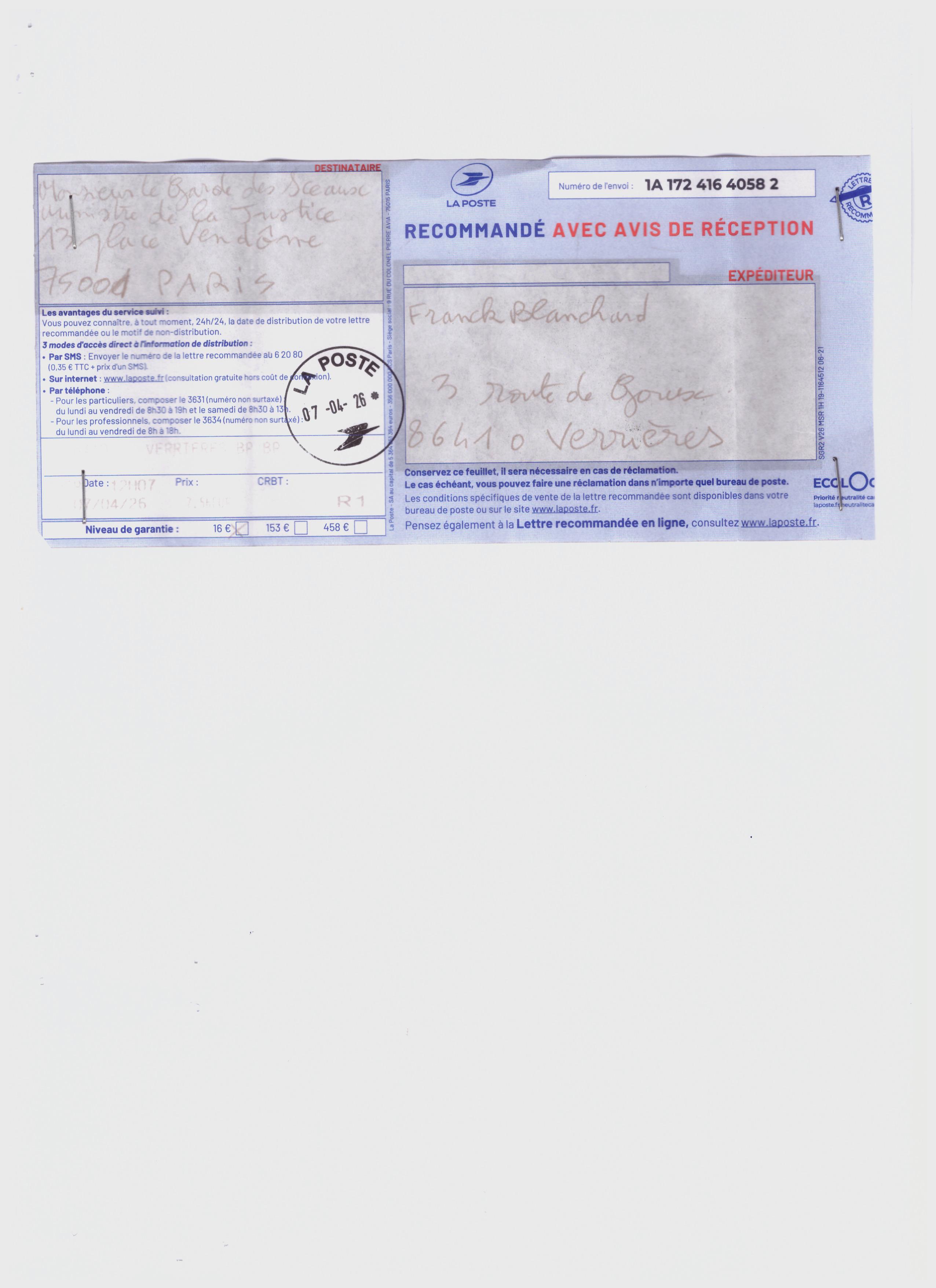 | XXXXXXXXXXXXXX | Ma Lettre Ouverte au Ministre de la Justice xxxxxxx"Le cri d'alarme d'un flic". |