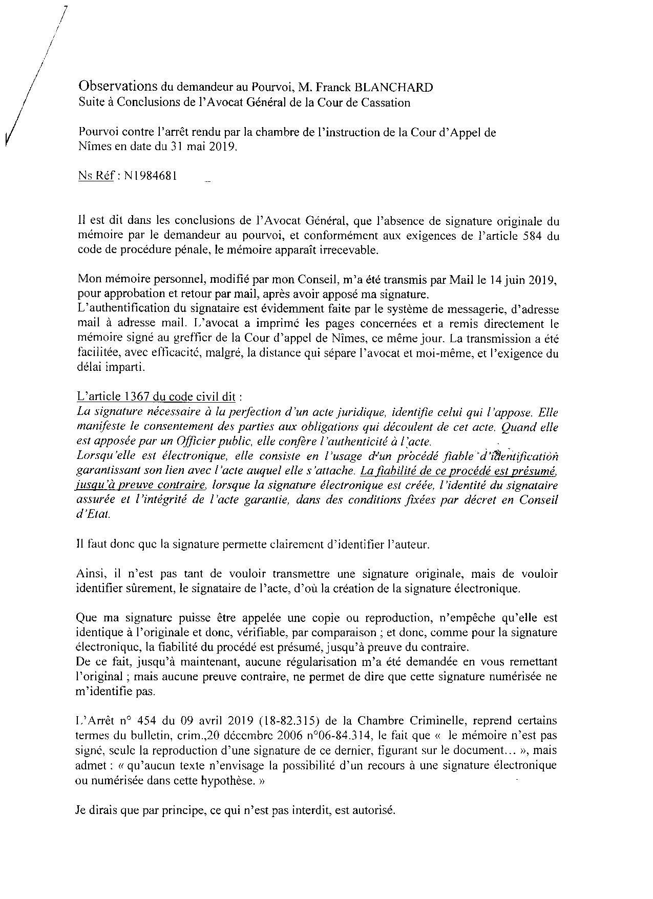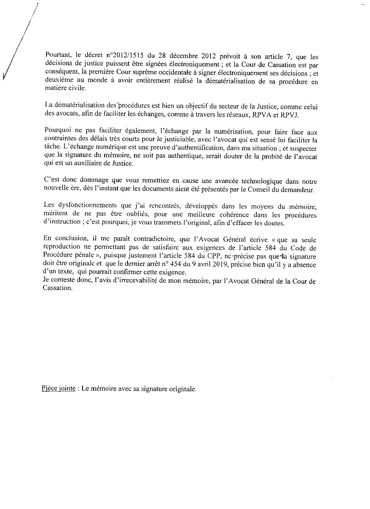 OBSERVATIONS AU GREFFE CRIMINEL SUITE AVIS AVOCAT GENERAL